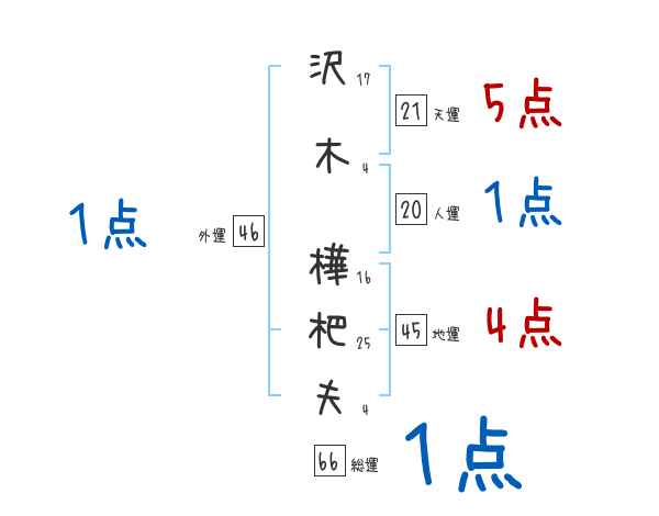 沢木樺杷夫さんの画数の鑑定結果