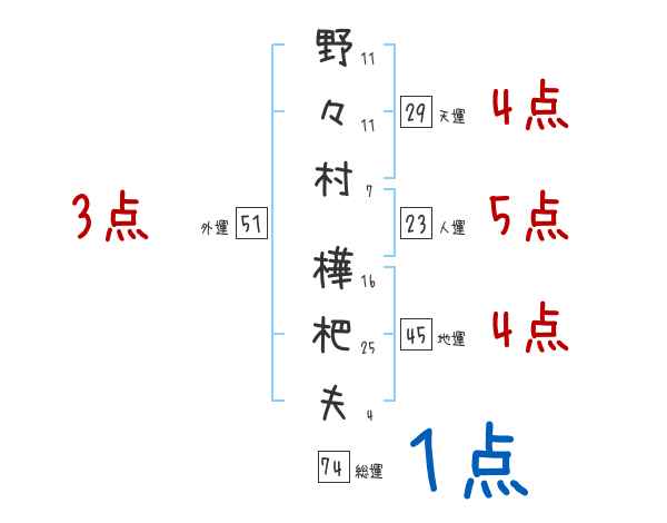 野々村樺杷夫さんの画数の鑑定結果