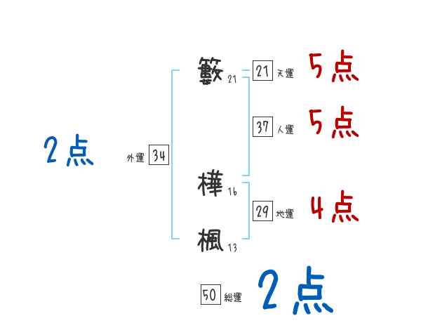 籔樺楓さんの画数の鑑定結果