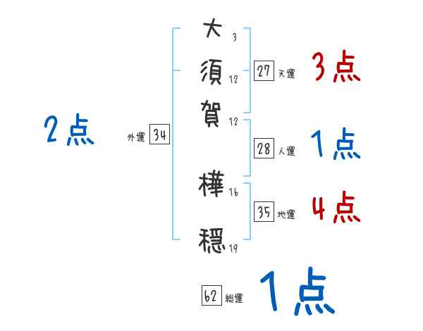 人運![]() | 大須賀樺穏さんの人運は28画の1つ星!家庭環境に注意。スポーツで活躍できる能力があるかも。 性格や才能などを表す2番目に重要な運勢です。人間関係や協調性、社会的な成功に影響します。主に20歳から50歳ぐらいまでの中年期の運勢を表します。 |