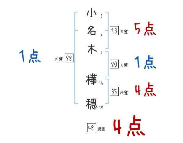 小名木樺穏さんの画数の鑑定結果