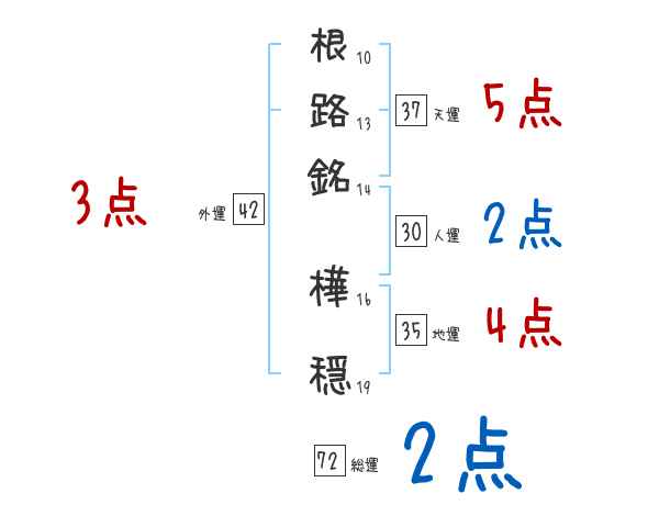 地運![]() | 根路銘樺穏さんの地運は35画の4つ星!温厚な性格で感受性が高い。穏和な性格で人望が厚い。 個性を表す基礎的な運勢です。性格形成や対人関係、行動力など家庭環境に影響されます。主に誕生してから20歳くらいまでの若年期の運勢を表します。 |