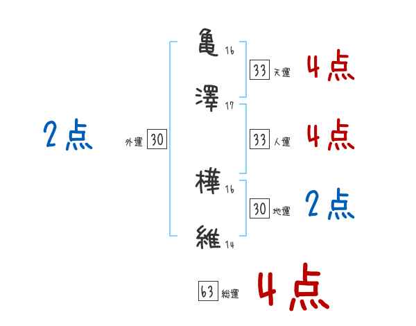 亀澤樺維さんの画数の鑑定結果