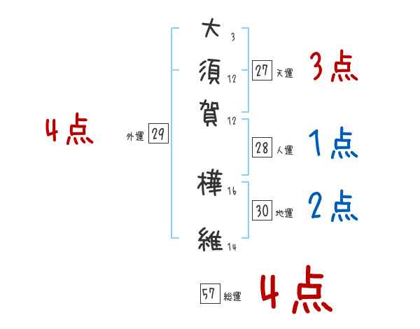 総運![]() | 大須賀樺維さんの総運は57画の4つ星!向上心があり人望がある。地位を得る。 あなたの人生を表す1番重要な運勢です。生涯を通じて影響する総合運となり、主に50歳以降の晩年期に影響を及ぼします。 |