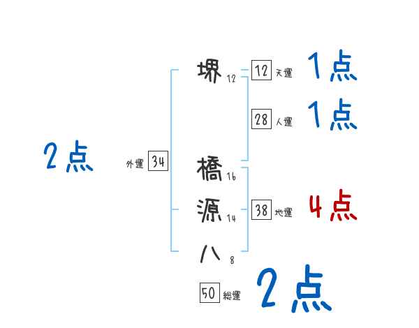 堺橋源八さんの画数の鑑定結果