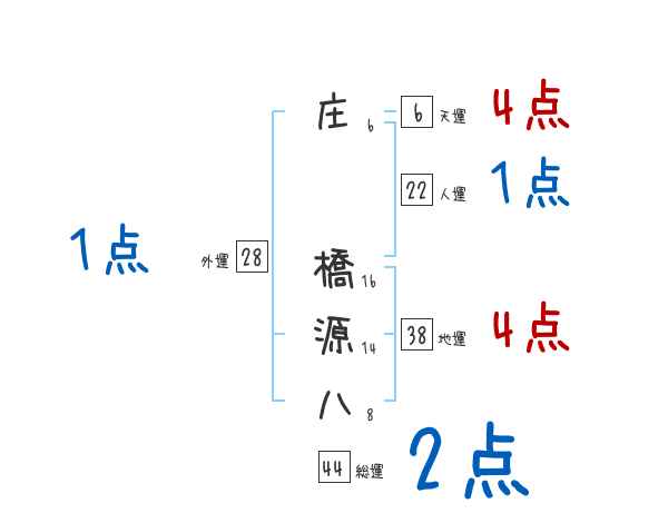 庄橋源八さんの画数の鑑定結果