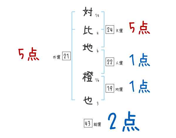 対比地橙也さんの画数の鑑定結果