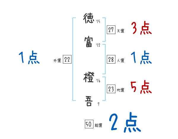 徳富橙吾さんの画数の鑑定結果
