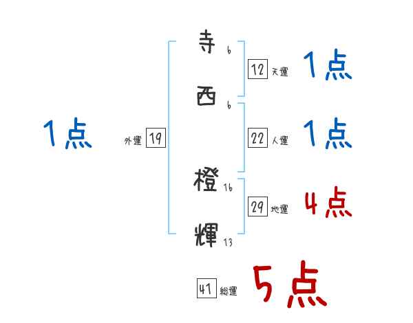 寺西橙輝さんの画数の鑑定結果