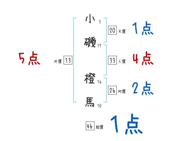 小磯橙馬さんの画数の鑑定結果