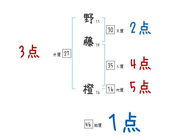 野藤橙さんの画数の鑑定結果