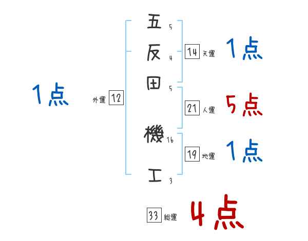 天運![]() | 五反田機工さんの天運は14画の1つ星!人に対して優しいがストレスを溜め込みがち。人間関係のトラブルを避けるよう気をつけましょう。 家系が持つ宿命的な運勢を表します。祖先から受け継いだ苗字ですので自分の力が及びません。家柄を象徴します。 |