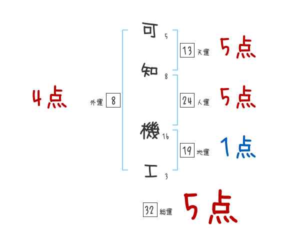 総運![]() | 可知機工さんの総運は32画の5つ星!柔軟性があり成功する。チャンスが多く金運が良い。 あなたの人生を表す1番重要な運勢です。生涯を通じて影響する総合運となり、主に50歳以降の晩年期に影響を及ぼします。 |