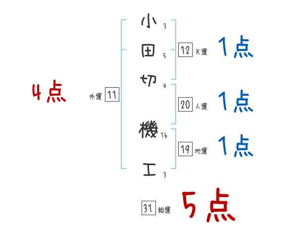 外運![]() | 小田切機工さんの外運は11画の4つ星!着実に富や地位を得る幸運な人生。 生活面を象徴する運勢です。外部から受ける影響力を表し、結婚運、家庭運や職場、環境への順応性を表します。 |