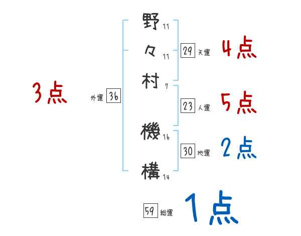 野々村機構さんの画数の鑑定結果