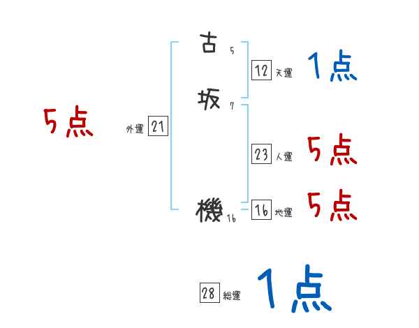 古坂機さんの画数の鑑定結果