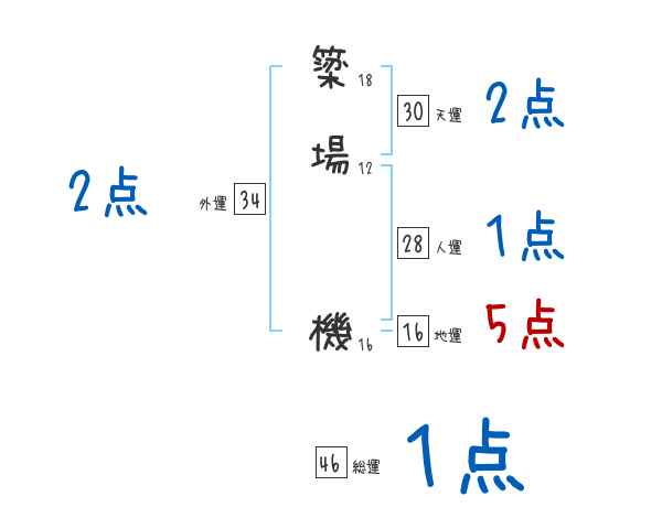 簗場機さんの画数の鑑定結果
