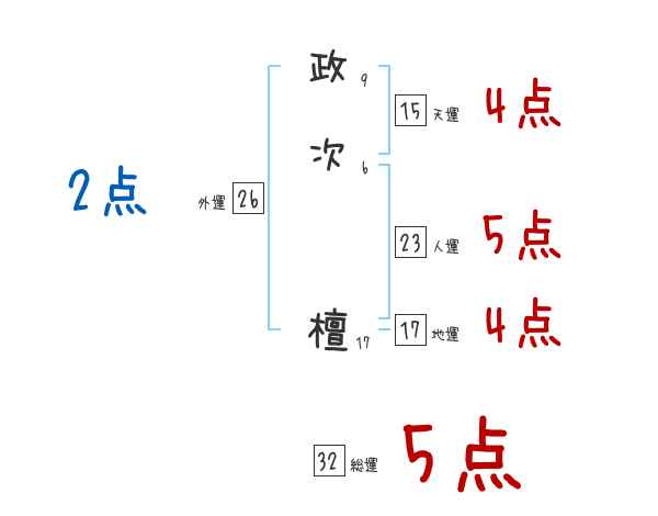 政次檀さんの画数の鑑定結果