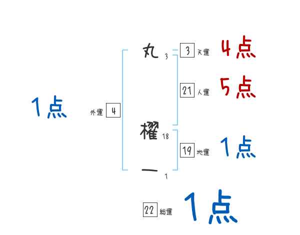 丸櫂一さんの画数の鑑定結果