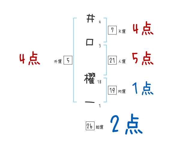 外運![]() | 井口櫂一さんの外運は5画の4つ星!健康で安泰。協調性に優れ、財産に恵まれる。 生活面を象徴する運勢です。外部から受ける影響力を表し、結婚運、家庭運や職場、環境への順応性を表します。 |