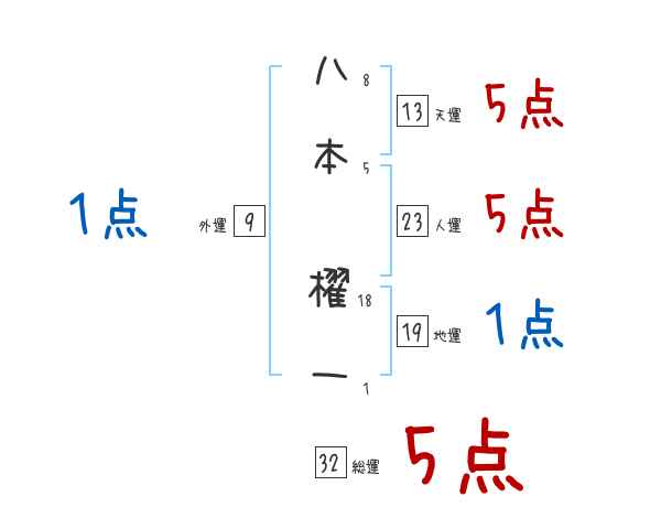 八本櫂一さんの画数の鑑定結果