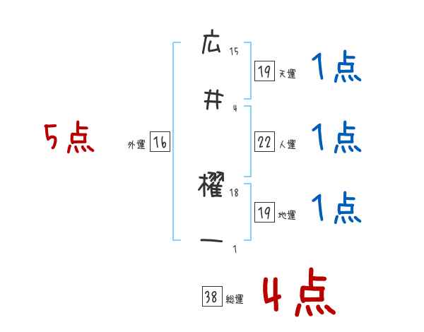 広井櫂一さんの画数の鑑定結果