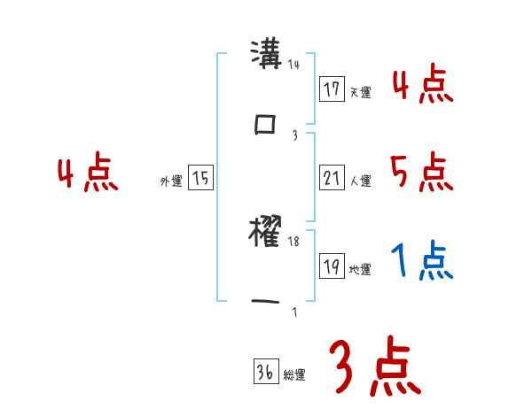 溝口櫂一さんの画数の鑑定結果