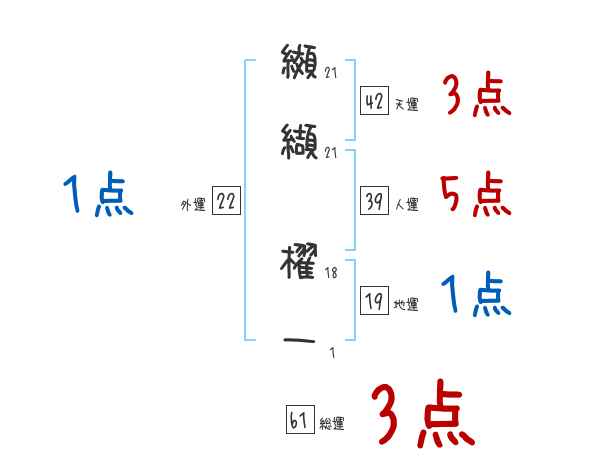 外運![]() | 纐纈櫂一さんの外運は22画の1つ星!努力することが苦手ないっぽう手先が器用。芸術性にも優れる。 生活面を象徴する運勢です。外部から受ける影響力を表し、結婚運、家庭運や職場、環境への順応性を表します。 |