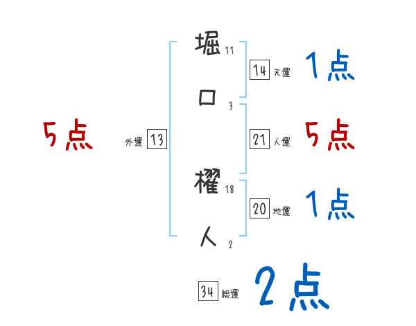 総運![]() | 堀口櫂人さんの総運は34画の2つ星!独創性に優れるが、自尊心が強く災難に注意しましょう。 あなたの人生を表す1番重要な運勢です。生涯を通じて影響する総合運となり、主に50歳以降の晩年期に影響を及ぼします。 |
