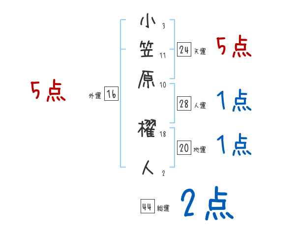 小笠原櫂人さんの画数の鑑定結果