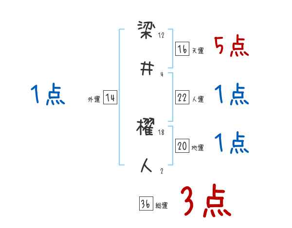梁井櫂人さんの画数の鑑定結果