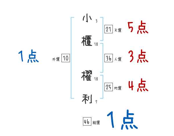 小櫃櫂利さんの画数の鑑定結果