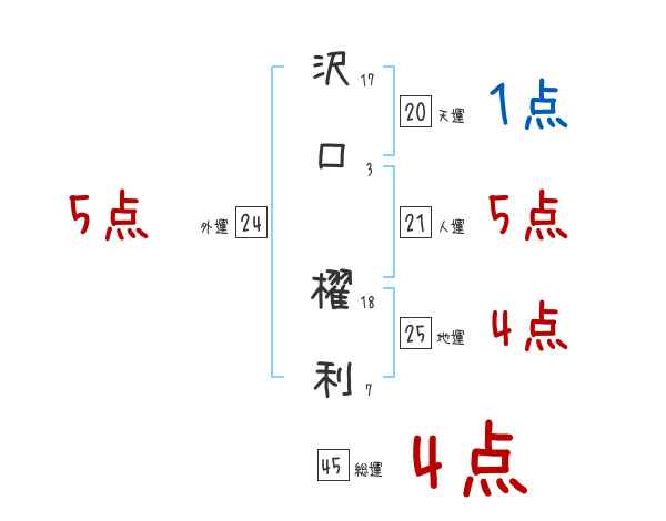 沢口櫂利さんの画数の鑑定結果