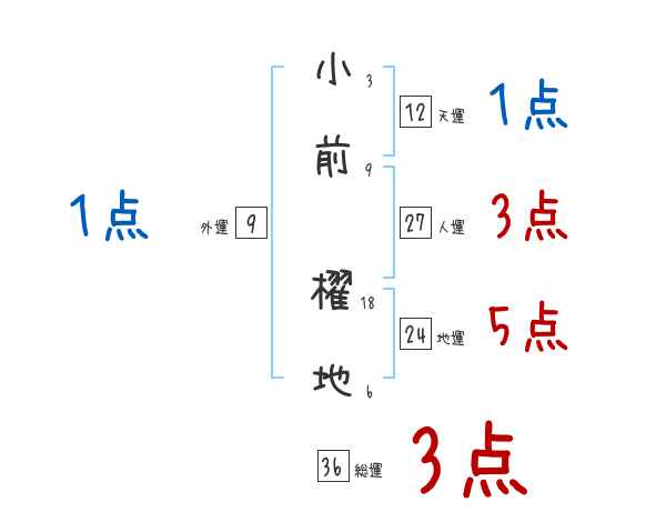 小前櫂地さんの画数の鑑定結果