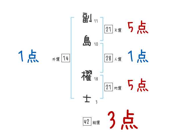 副島櫂士さんの画数の鑑定結果