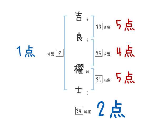 吉良櫂士さんの画数の鑑定結果