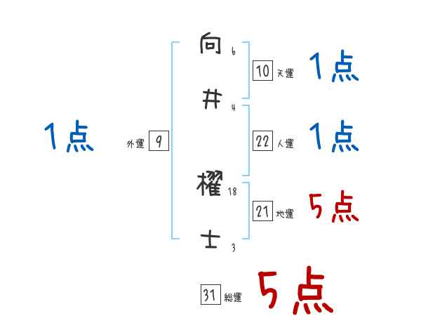 向井櫂士さんの画数の鑑定結果