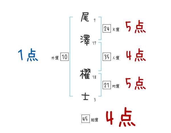 尾澤櫂士さんの画数の鑑定結果