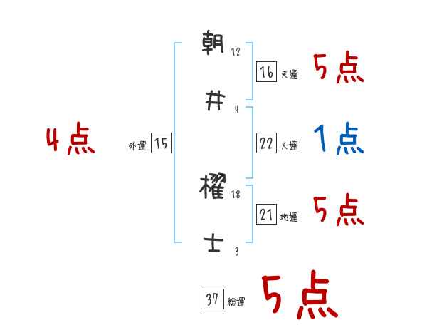 朝井櫂士さんの画数の鑑定結果