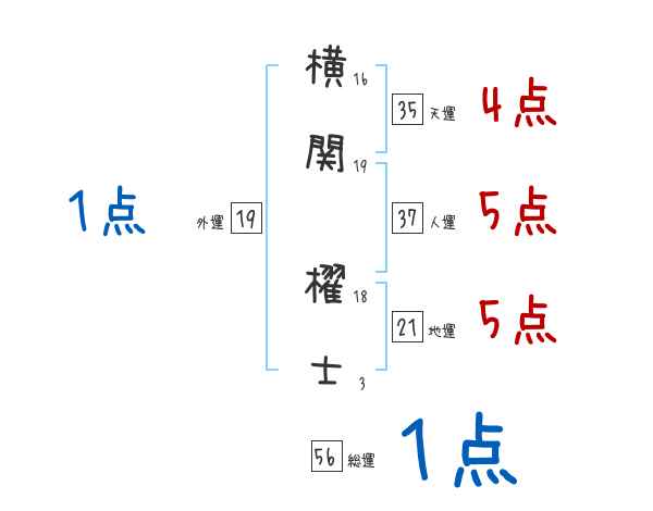 横関櫂士さんの画数の鑑定結果