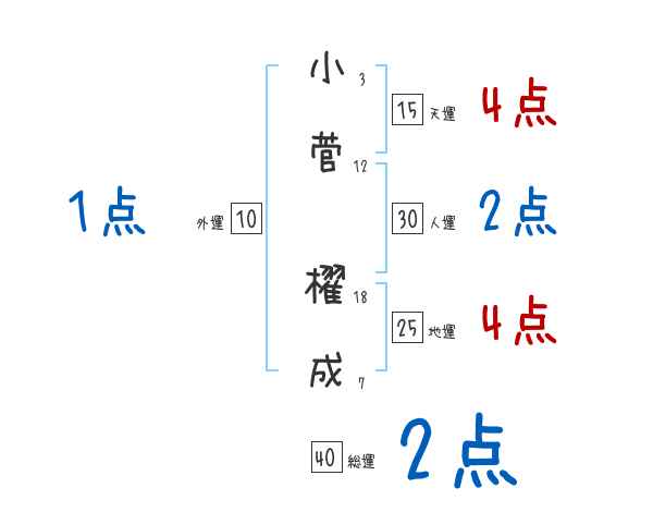 天運![]() | 小菅櫂成さんの天運は15画の4つ星!人徳があり出世する。順調に物事を進め円満な人生。 家系が持つ宿命的な運勢を表します。祖先から受け継いだ苗字ですので自分の力が及びません。家柄を象徴します。 |