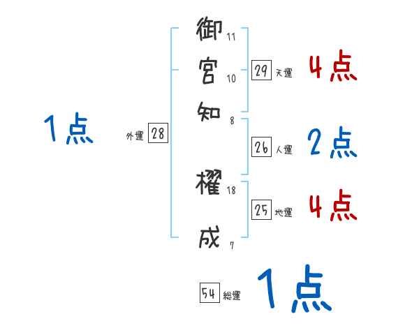 御宮知櫂成さんの画数の鑑定結果