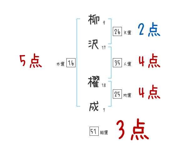 柳沢櫂成さんの画数の鑑定結果