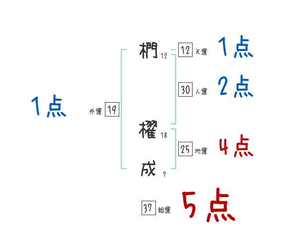 椚櫂成さんの画数の鑑定結果