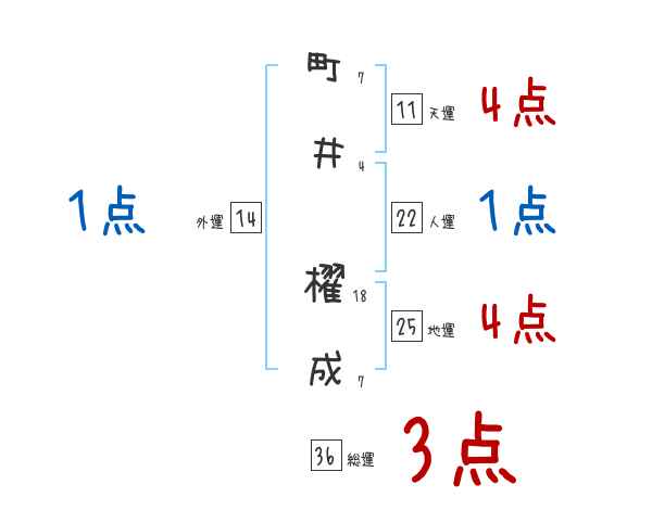 天運![]() | 町井櫂成さんの天運は11画の4つ星!着実に富や地位を得る幸運な人生。 家系が持つ宿命的な運勢を表します。祖先から受け継いだ苗字ですので自分の力が及びません。家柄を象徴します。 |
