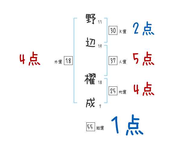 野辺櫂成さんの画数の鑑定結果