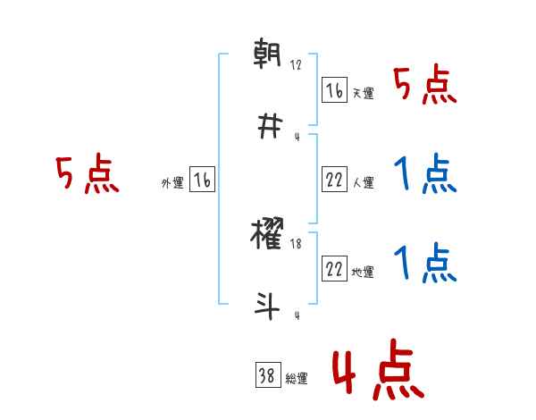朝井櫂斗さんの画数の鑑定結果