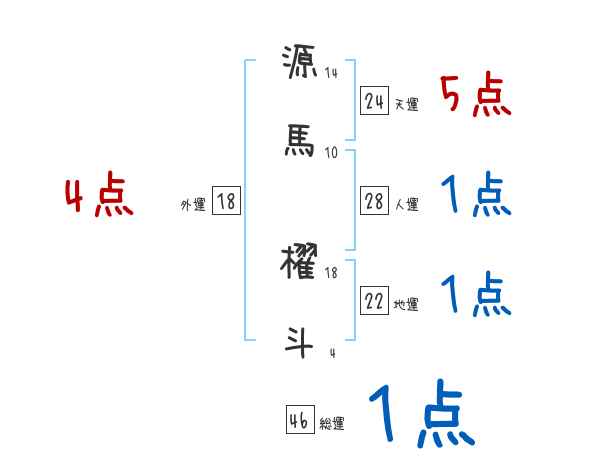 源馬櫂斗さんの画数の鑑定結果