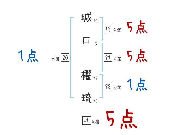 城口櫂琉さんの画数の鑑定結果