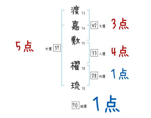 渡嘉敷櫂琉さんの画数の鑑定結果